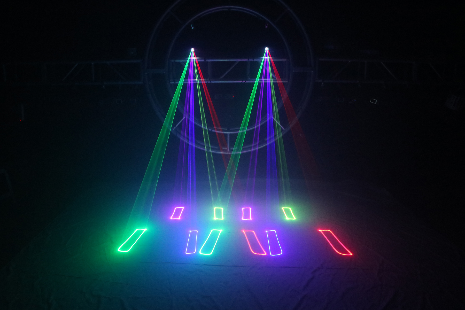 播放系統(tǒng) 高速振鏡20K 掃描角度左右20輸入信號線性失真 節(jié)目效果 各種光束、復(fù)雜圖形、斷筆效果內(nèi)存上百種動畫線條程序效果
