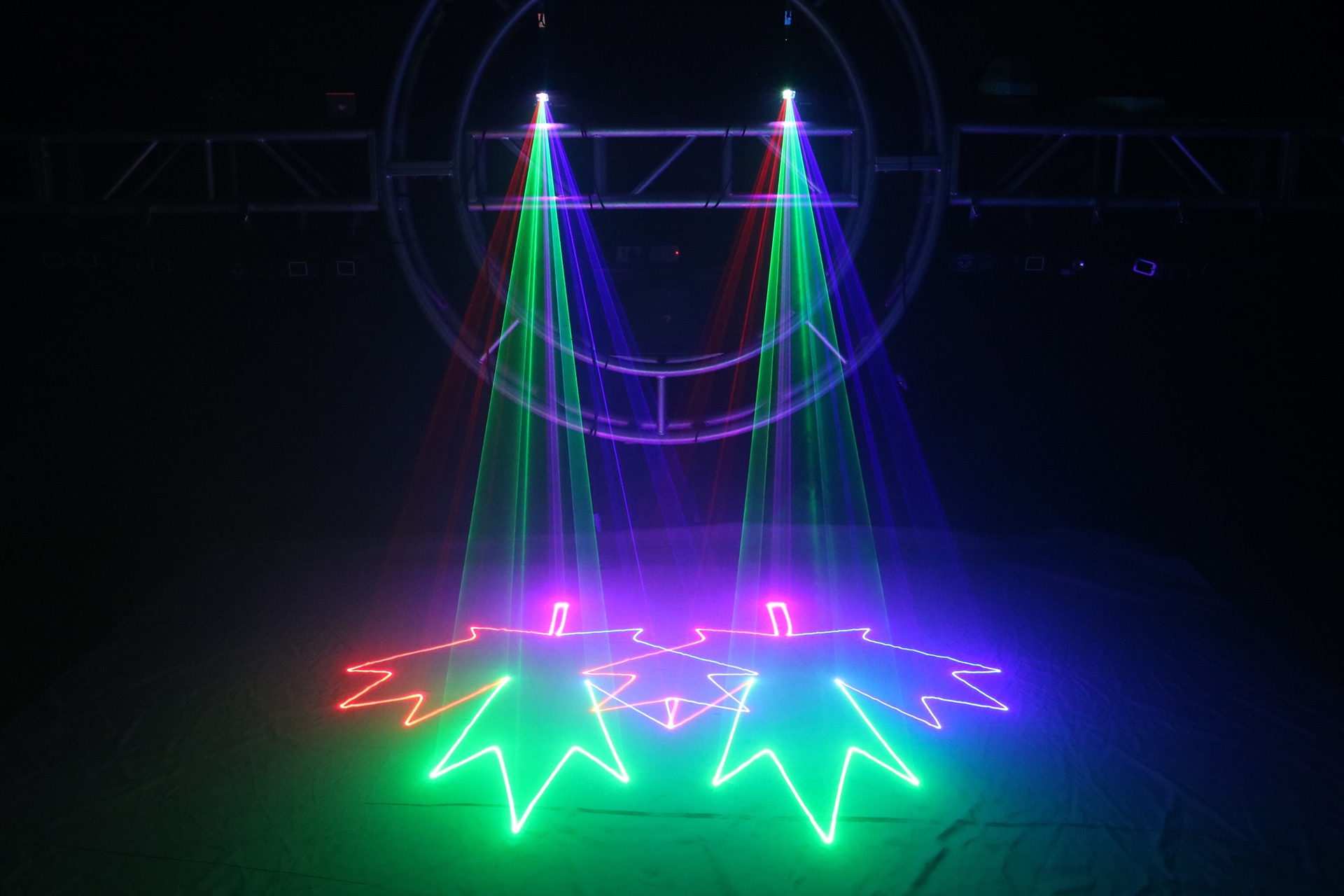 播放系統(tǒng) 高速振鏡20K 掃描角度左右20輸入信號線性失真 節(jié)目效果 各種光束、復(fù)雜圖形、斷筆效果內(nèi)存上百種動畫線條程序效果